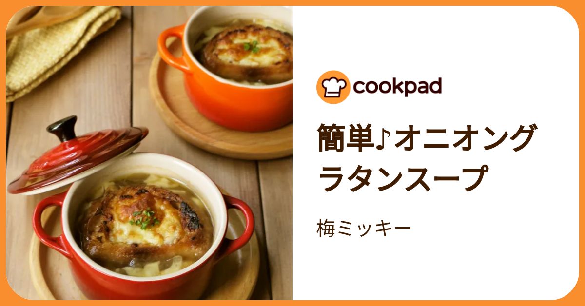 「簡単♪オニオングラタンスープ」の作り方。【つくれぽ800件感謝】 電子レンジで飴色玉葱が簡単♪ チーズガーリックトーストを乗せたら、簡単に本格的な味わいです♪♪ 材…